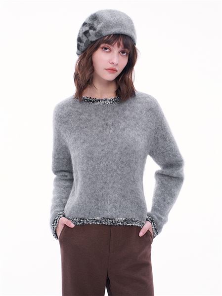 舒適滿分馬海毛羊毛針織上衣-灰