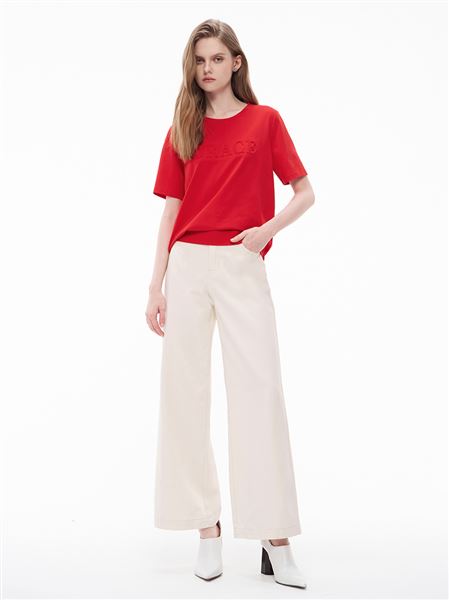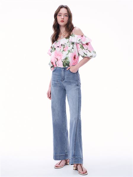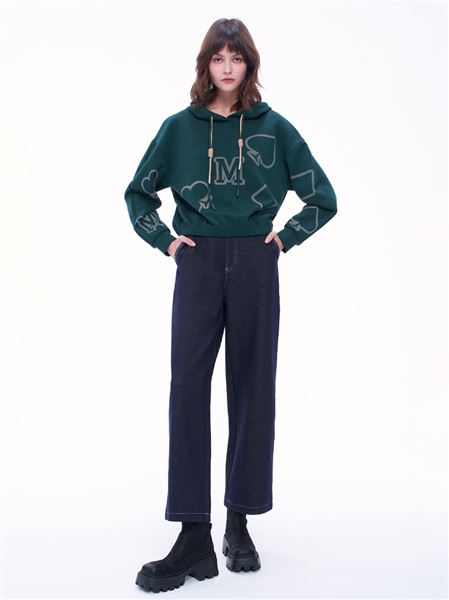 M+ | 酷甜撞色刺繡棉麻牛仔寬褲