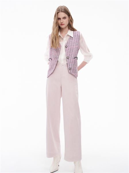 甜漾刷白燙銀皮標萊賽爾直筒褲-粉
