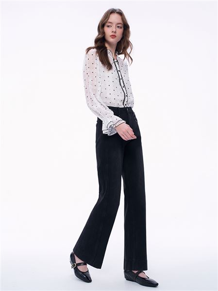 時尚修腿釘珠牛仔直筒褲
