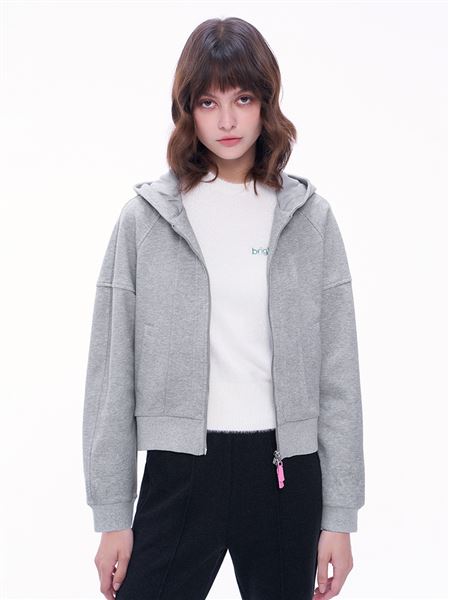 挺舒適空氣棉泡泡袖短版連帽外套-深灰