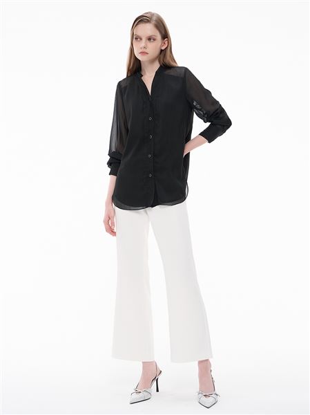 高雅氣質壓褶領片雪紡襯衫