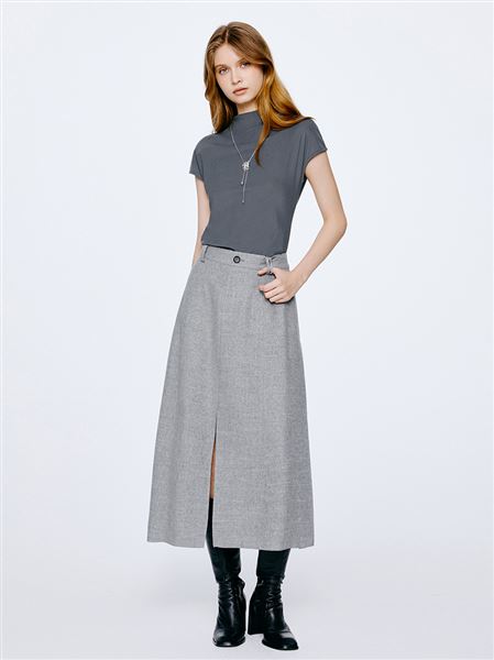 M+ | 美型飄逸仿麂皮壓褶A字裙