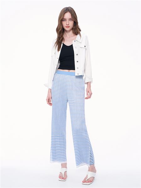 幾何變奏曲亮眼壓褶絲巾-淺藍