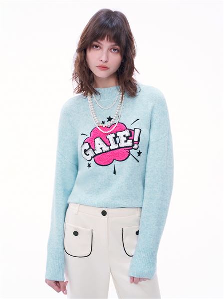 【官網獨賣】夢幻QQ毛亮片羊毛花紗針織毛衣-藍