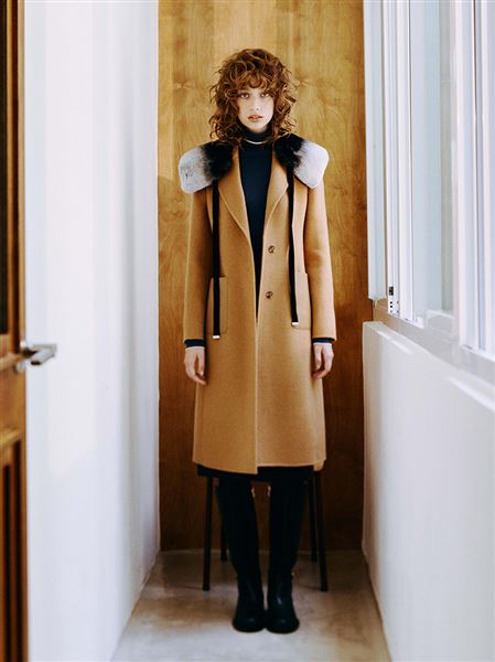 貴婦100%羊毛狐狸毛2way斗篷外套-淺卡其