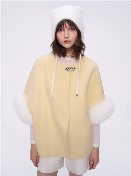 M+ | 奢華雙面毛呢綿羊毛繭型斗篷-黃