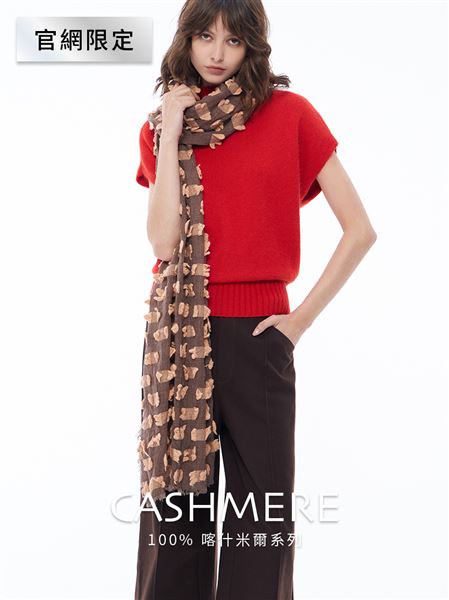 俏皮撞色繽紛剪花羊絨圍巾-咖啡
