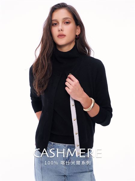 M+ | 撞色愛心釦100%羊絨針織外套-黑