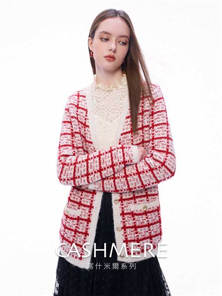M+ | 撞色愛心釦100%羊絨針織外套-粉