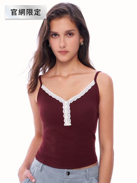【絕版珍藏】美胸V領拼接蕾絲微刷毛Bratop-暗紅 | 官網限定