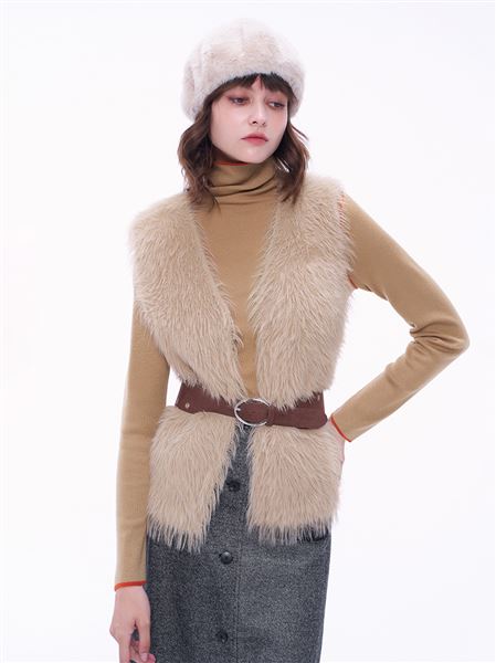 【官網獨賣】蓬鬆毛絨感仿貂毛背心-卡其