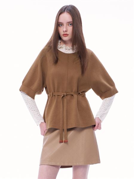 輕柔3way泡泡袖純羊毛毛衣-咖啡