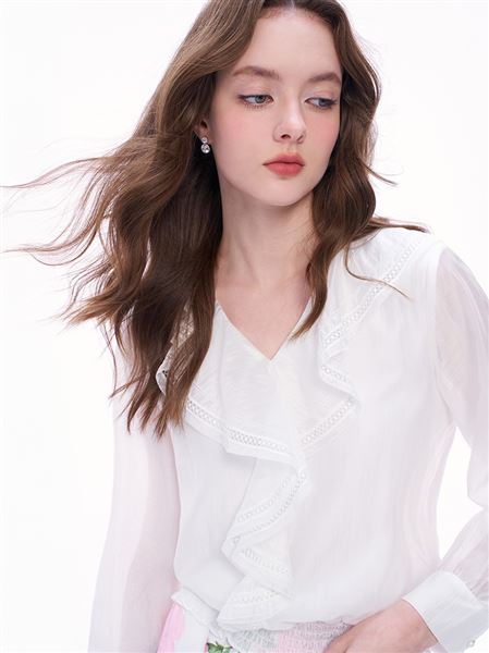 蕾絲荷葉領楊桃星星雪紡襯衫