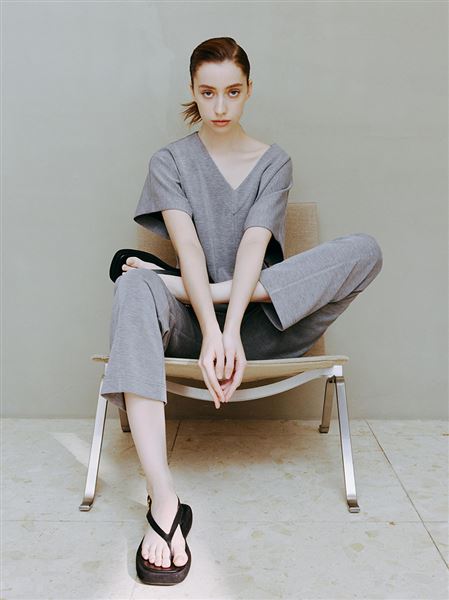 M+ | 沁涼莫代爾修身V領上衣-灰