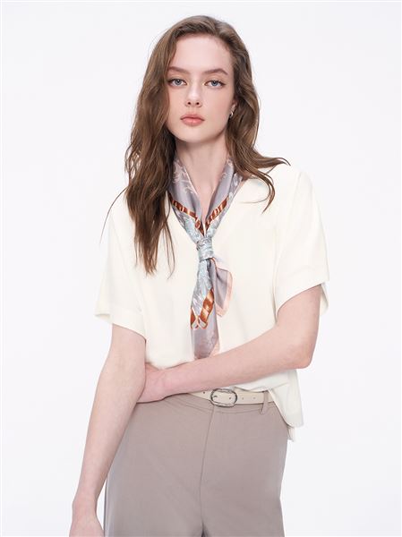 減齡荷葉領壓褶緞面襯衫