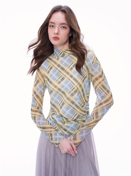 時尚格紋六角網小立領上衣