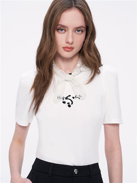 軟趴趴熊貓牙刷繡太空棉上衣-白