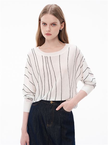 簡約直紋微短版飛鼠袖羊毛針織上衣