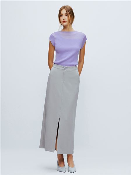 修身軟Q彈太空棉開衩鉛筆長裙-灰