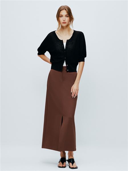 修身軟Q彈太空棉開衩鉛筆長裙-咖啡