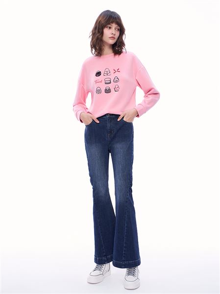 別緻車縫線牛仔小喇叭褲