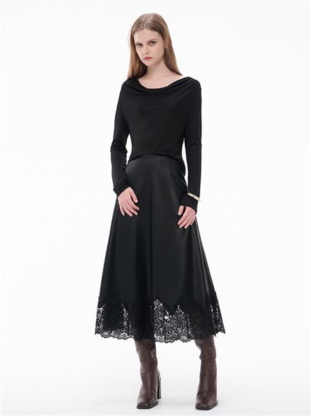 M+ | 精緻女人花邊車股蕾絲皮長裙