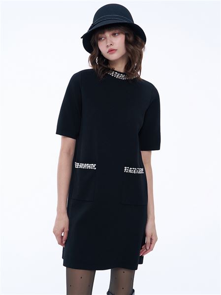 許妳耀眼閃鑽小立領針織洋裝-黑