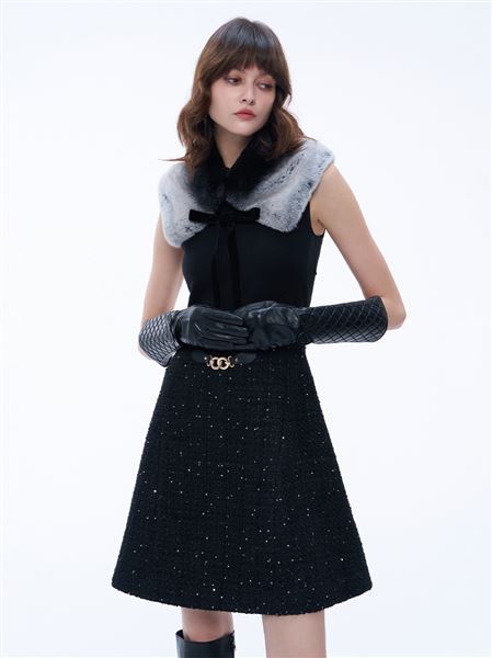 黯魅小香亮片包芯紗傘狀短洋裝
