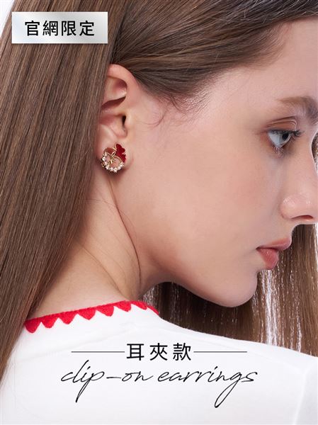 鴻運春綻紅釉花朵珍珠耳夾 | 官網限定