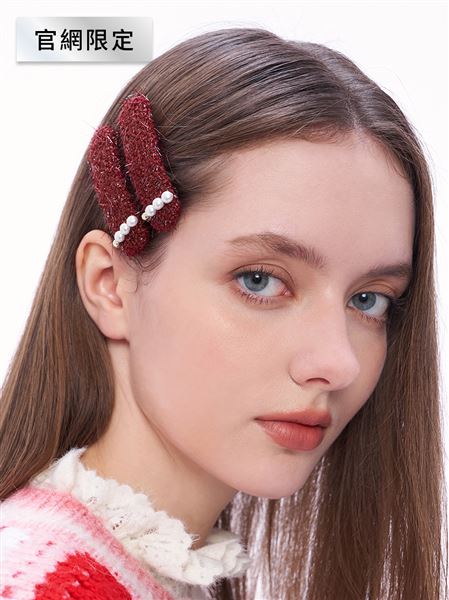 復古酒紅毛呢珍珠髮夾 | 官網限定