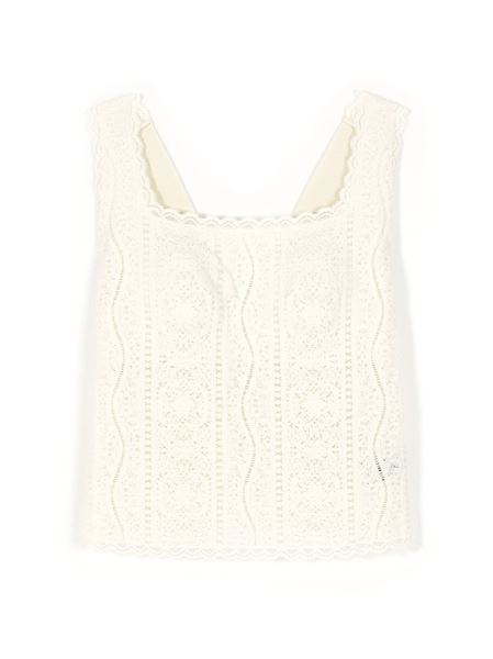 幾何小花蕾絲刷毛V領Bratop-米白 | 官網限定