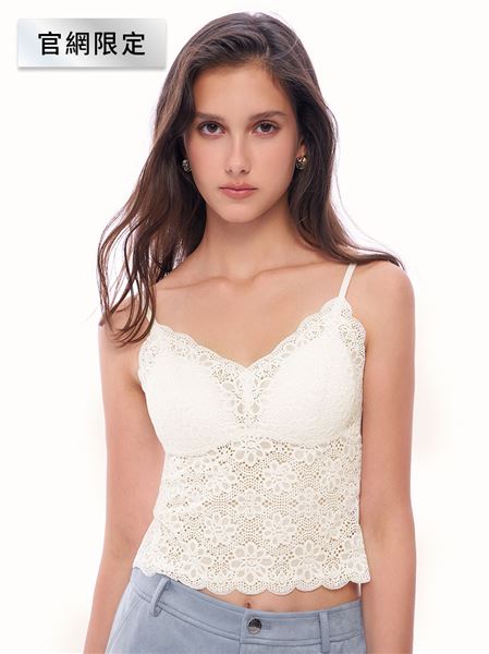 優雅滿版植絨蕾絲美胸Bra Top-白 | 官網限定
