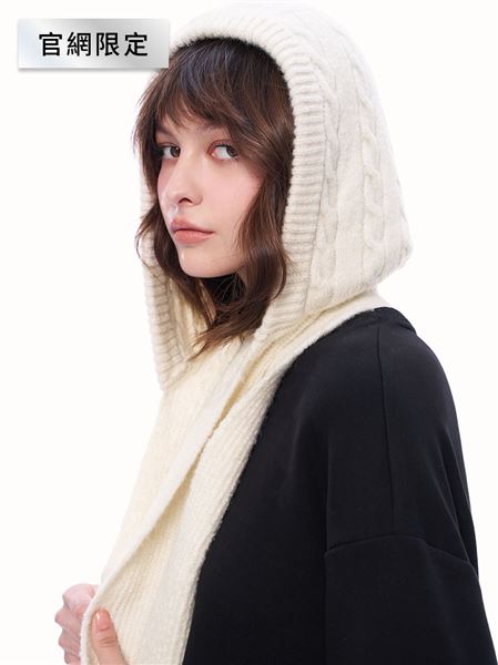 人氣追加 | 頭暖暖麻花柔軟連帽造型圍巾-米白 | 官網限定