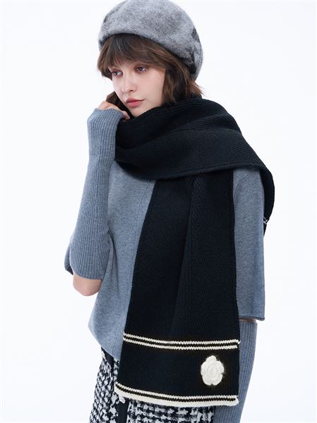 人氣追加 | 立體山茶花小香風保暖圍巾-黑