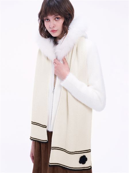 人氣追加 | 立體山茶花小香風保暖圍巾-白