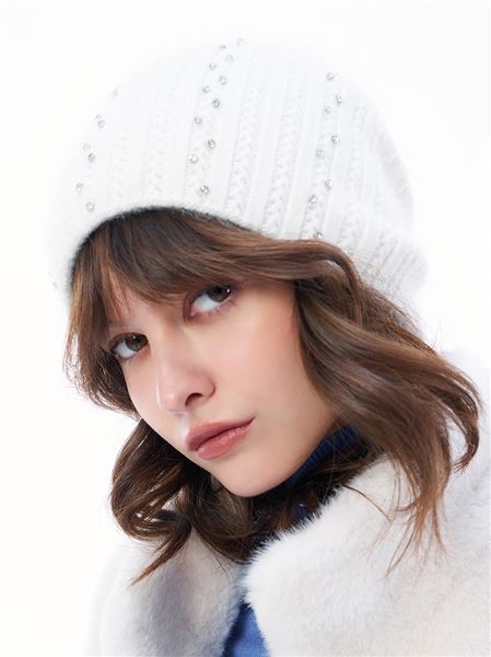 軟綿綿白雪閃鑽兔毛針織毛帽-白