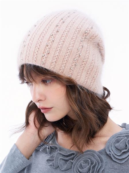 軟綿綿白雪閃鑽兔毛針織毛帽-粉
