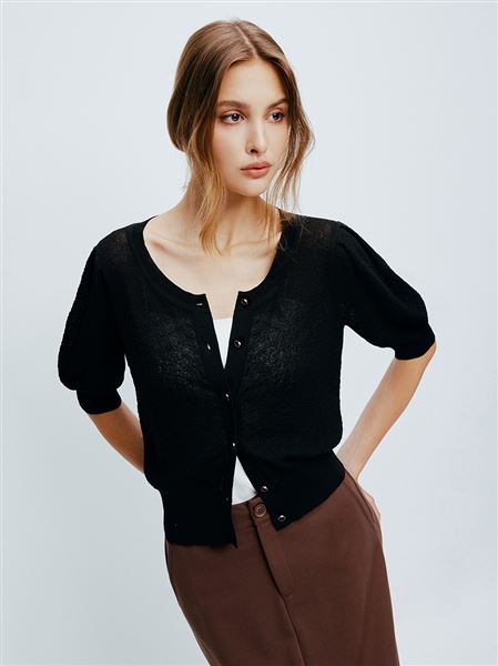 【官網獨賣】透膚紋理感冰爽絲五分泡泡袖小外套-黑