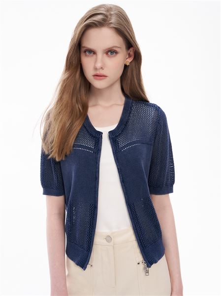 【官網獨賣】潮流洗舊感鏤空純棉針織泡泡袖小外套