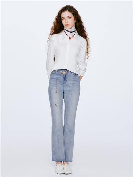 【官網獨賣】M+ | 時髦毛邊中高腰刷白小喇叭褲