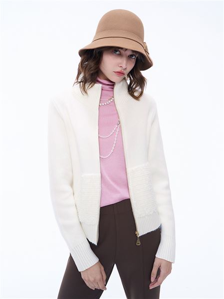 【絕版珍藏】時髦高領仿貂毛羊羔毛外套-米白.