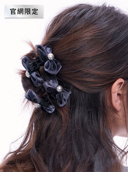 【絕版珍藏】法式甜美絨布蝴蝶結珍珠髮夾 | 官網限定