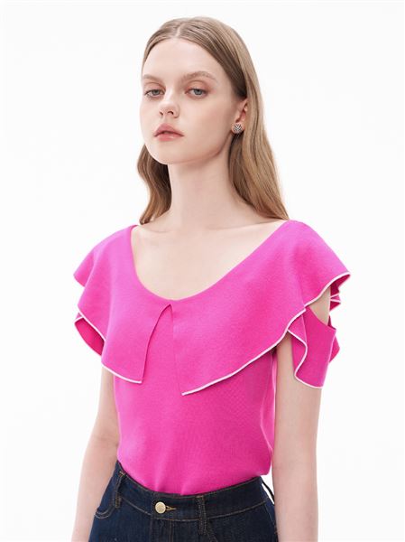 【官網獨賣】甜美荷葉邊大圓領冰爽絲上衣-桃
