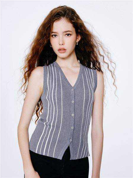 【官網獨賣】都會流線感直坑條紋羊毛針織背心