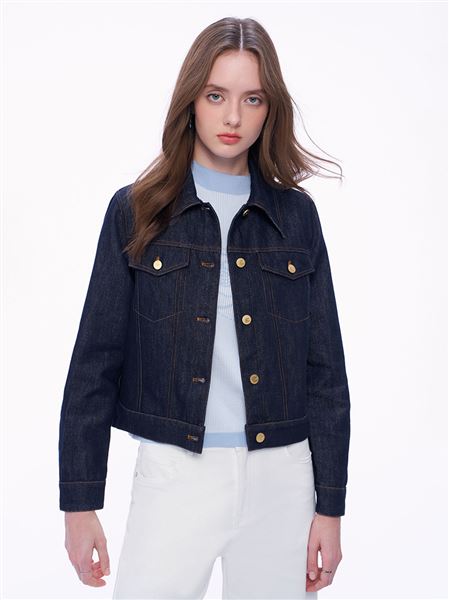 個性單釦小皮標純棉牛仔微短版賽車外套