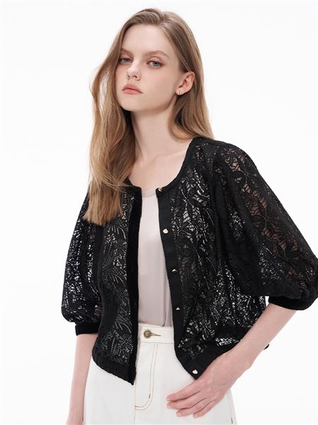 精緻工藝小香鏤空雕花蕾絲珍珠線圈釦小外套