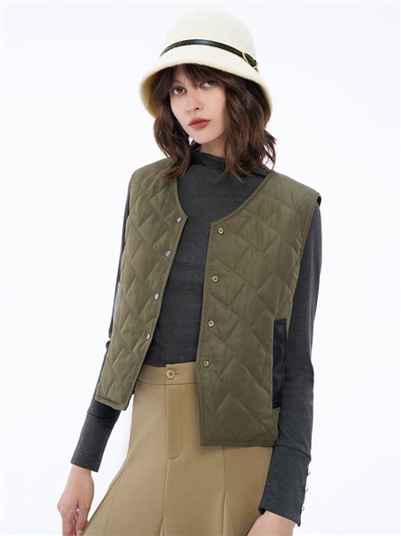 M+ | 透膚雙色紗袖開衩針織外套-卡其