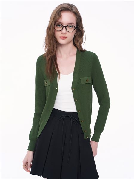 精緻珍珠菱格紋冰爽絲針織外套-淺綠