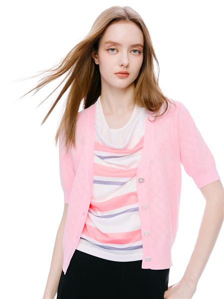 精緻珍珠菱格紋冰爽絲針織外套-粉
